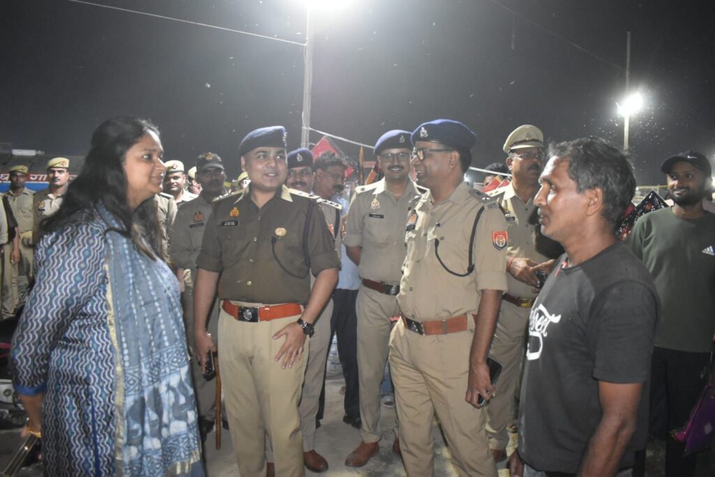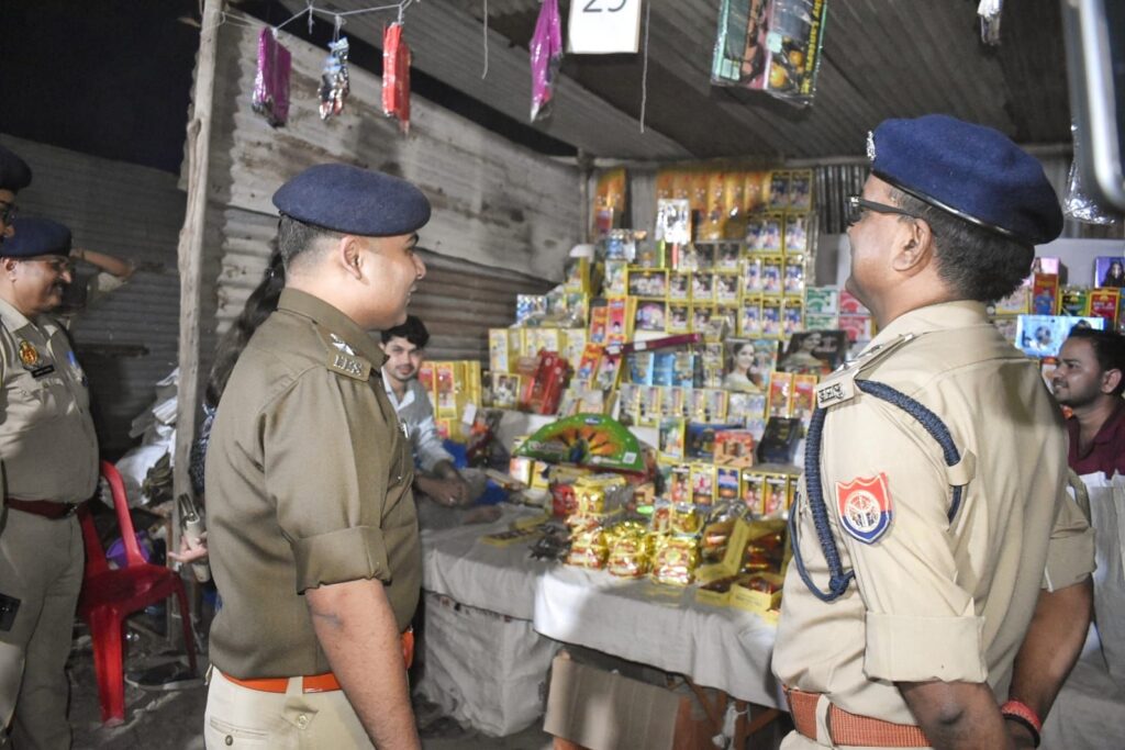 गाजीपुर।जिलाधिकारी आर्यका अखौरी एवं पुलिस अधीक्षक डा. ईरज राजा ने आगामी त्यौहार धनतेरस, दीपावली, गोवर्धन पूजा, डाला छठ, देव दीपावली की सुरक्षा व्यवस्था बनाये रखने के दृष्टिगत  लंका मैदान ने लगाए गए पटाखों की दुकान का निरीक्षण कर सुरक्षा व्यवस्था का जायजा लिया। दुकानदारों से फायर सेप्टी, बालू, एवं अन्य सुरक्षा समाग्री रखने को कहा। इसके उपरान्त अधिकारी द्वय द्वारा  शहर के विभिन्न क्षेत्रों में रूट मार्च किया गया। जिसमें लंका मैदान से चुंगी होते हुए आर के बी के, वंशी बाजार, सैनिक चौराहा तक पैदल गस्त कर  सुरक्षा व्यवस्था एवं शांती  बनाये रखने की अपील की गयी। इस अवसर पर उपजिलाधिकारी सदर, क्षेत्राधिकारी सदर, एवं अन्य अधिकारी, पुलिस बल मौजूद रहे।