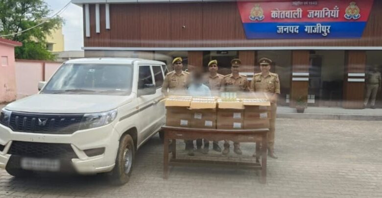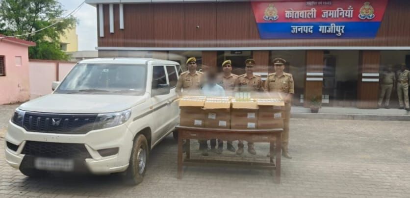 गाज़ीपुर। अपराधियों के विरूद्ध चलाए जा रहे अभियान के तहत, जमानियां कोतवाली पुलिस टीम ने 32 पेटी (1440 पाऊच) अवैध देशी शराब ब्ल्यू लाईम व एक बोलेरो के साथ एक अभियुक्त को गिरफ्तार किया है। गुरुवार को उपनिरीक्षक अरुण पाण्डेय मय हमराह के क्षेत्र में मौजूद थे, तभी मुखबिर से मिली सूचना के आधार पर देवढी पुलिया से आगे दाउदपुर तिराहा के पास से अभियुक्त विवेक कुमार पुत्र लल्लन राम निवासी मौनिया बिगहा (डालमिया नगर) थाना डेहरी जनपद रोहतास बिहार को गिरफ्तार किया गया। उसके पास के बोलेरो न्यू नं. बीआर 24 ए एम 0286 से 32 पेटी में 1440 पाऊच देशी शराब ब्ल्यू लाईम बरामद हुआ। अभियुक्त के विरूद्ध आबकारी अधिनियम का अभियोग पंजीकृत कर आवश्यक विधिक कार्यवाही की गयी।